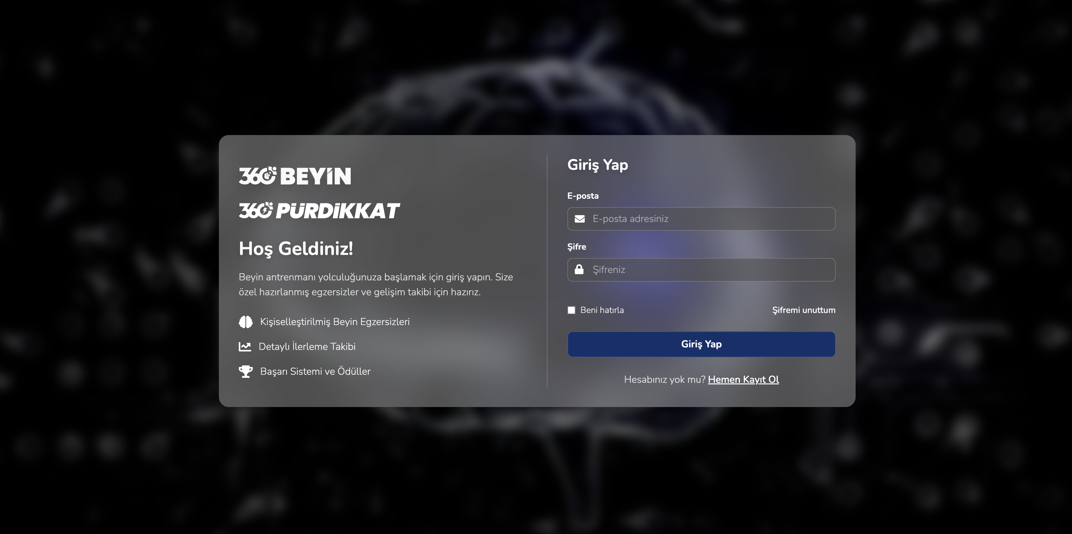 Beyin antrenmanı yolculuğunuza başlamak için giriş yapın. Size özel hazırlanmış egzersizler ve gelişim takibi için hazırız.